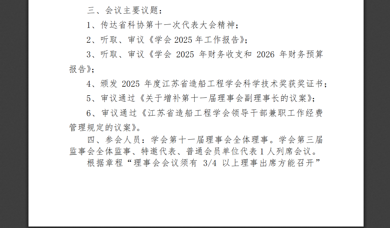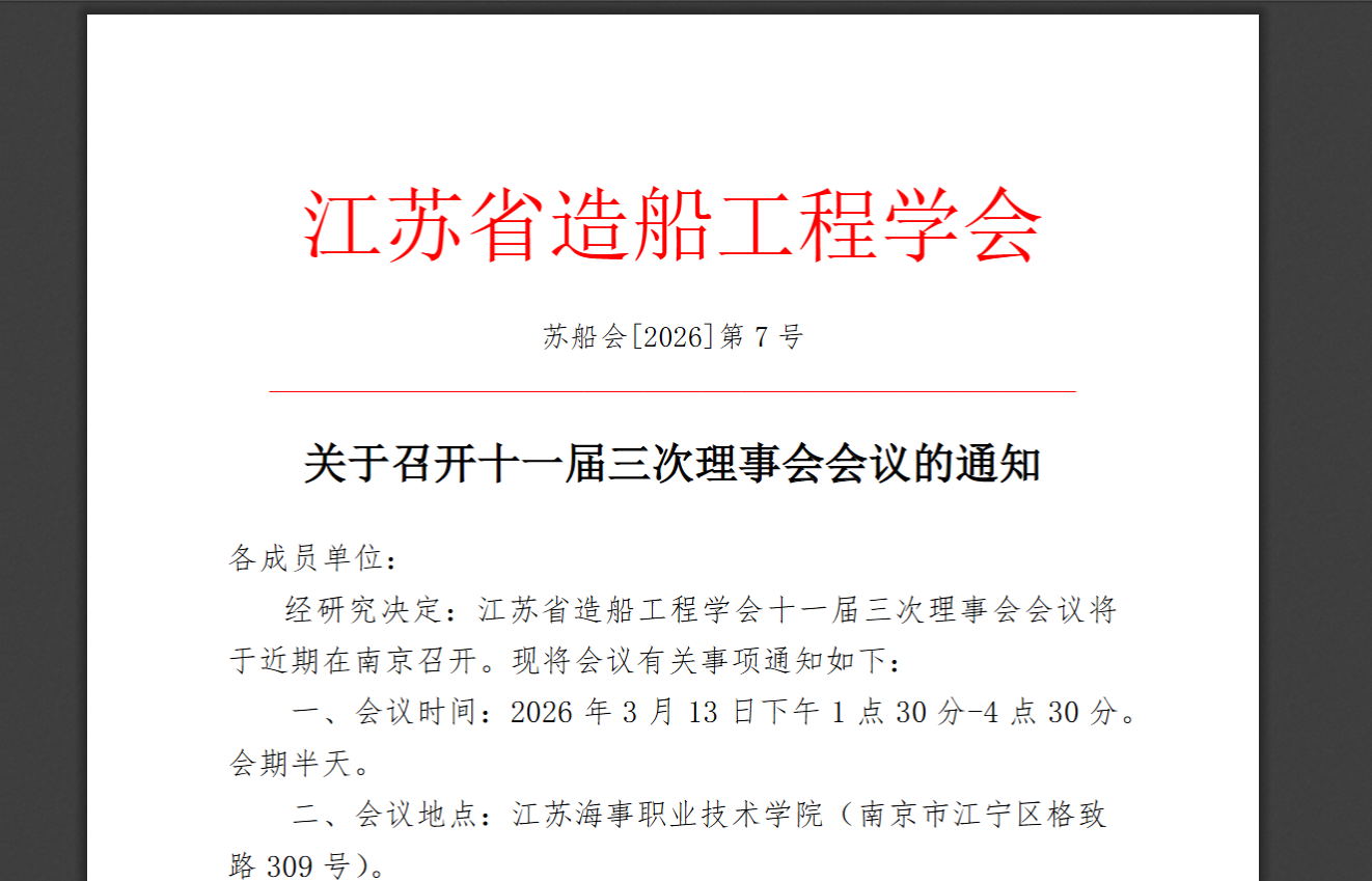 江苏省造船工程学会关于召开十一届三次理事会会议的通知
