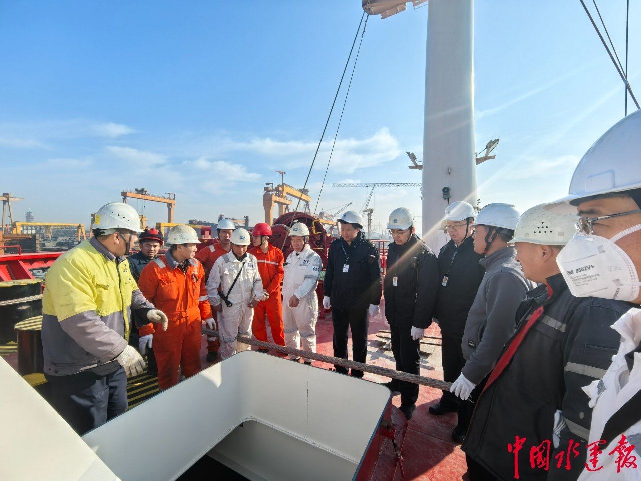 结合龙和船厂高新技术企业建造优势,扬州海事创新“监管+服务”模式,为船厂提供“一对一”技术指导,同步宣贯典型案例汇编中的质量风险要点,帮助企业举一反三强化质量管控。针对发现的细节问题,现场反馈整改意见并明确时限,实现“检查—指导—整改”闭环管理,既守住安全底线,又保障交船进度。